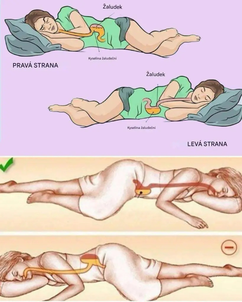 Na levé straně se nachází žaludek i slinivka. Když spíte na levém boku, gravitace napomáhá přirozenému pohybu potravy a podporuje správnou činnost trávicí soustavy. Díky tomu je trávení lehčí, méně zatěžuje organismus a snižuje se riziko těžkého pocitu po jídle.
