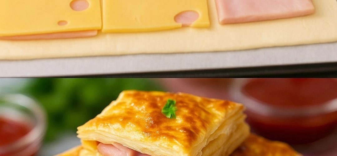 🥄 2. Příprava: Rozválej listové těsto, potřete ho smetanou, polož plátky šunky a posypej nastrouhaným sýrem. Sdílej tento příspěvek s přáteli, kteří milují rychlé recepty.