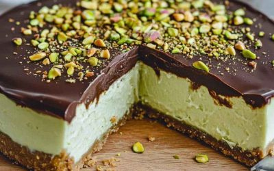 Dubajský čokoládový cheesecake: krémový pistáciový dezert s křupavou vrstvou a ganache