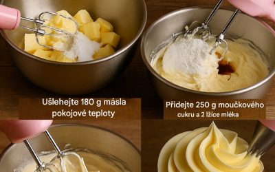 Ingredience 180 g nesoleného másla (pokojové teploty) 250 g prosátého moučkového cukru 2 lžíce mléka nebo smetany ke šlehání 1…