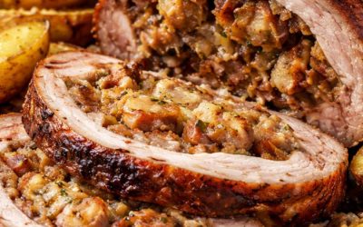 Plněná pečeně z vepřového krku s velkým množstvím masa a cibule
